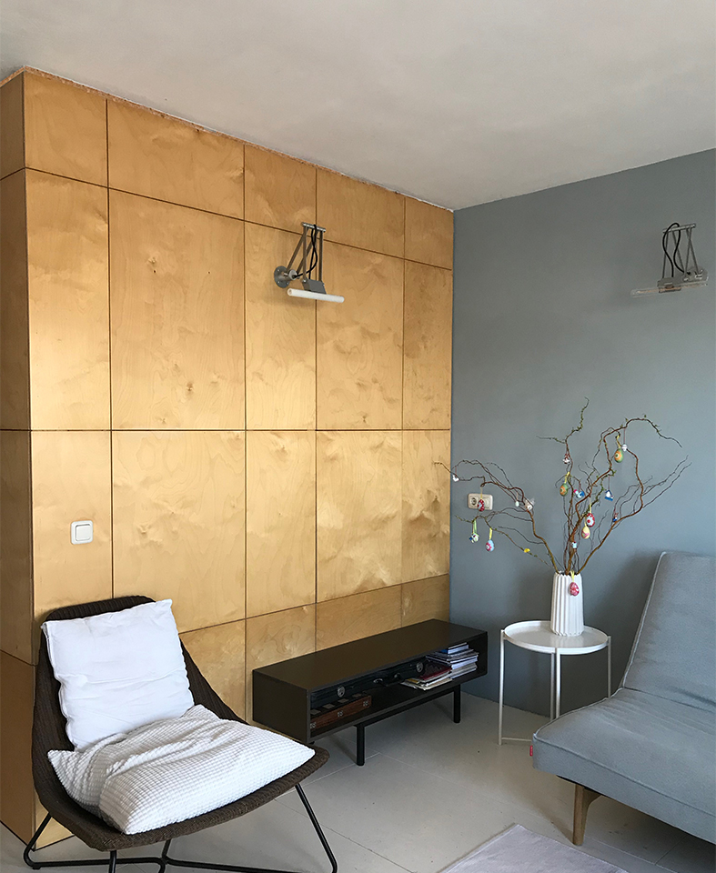 De gebruikte materialen en kleuren geven dit appartement veel sfeer en de witte vloer maakt het heel licht. Het appartement lijkt veel groter dan de 63 m2 die het is.